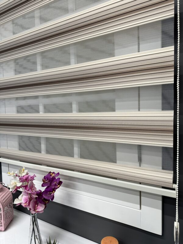 Atölye Perde Krem Açık Kahve Renk Geçişli Dar Pliseli Zebra Stor Perde
